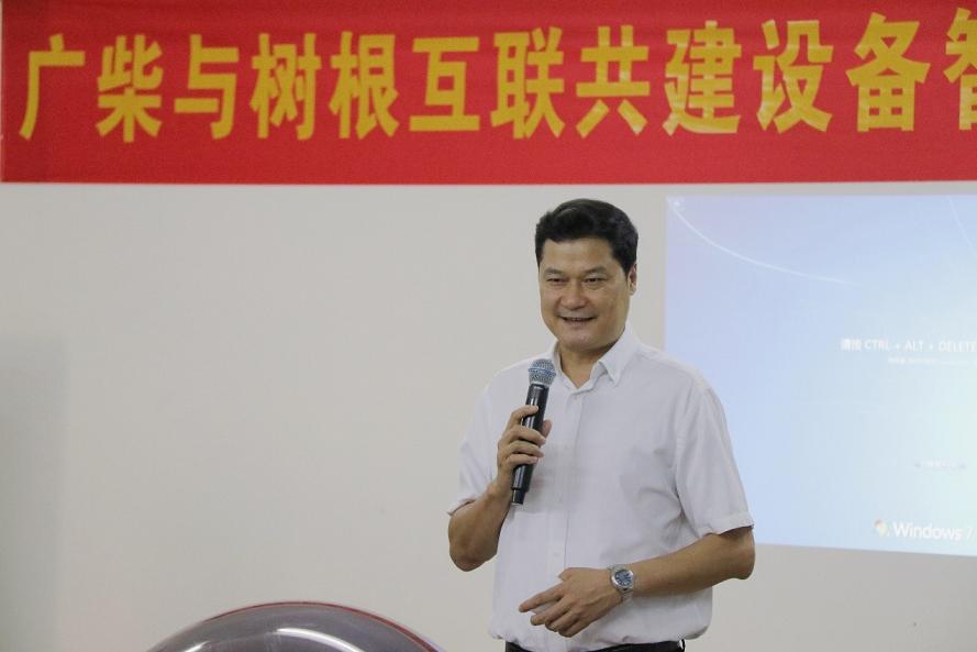 廣柴股份總經理、黨委書記李偉彪首先向樹根互聯的到來表示歡迎,他指出,當今時代已是人人互通、萬物互聯的時代,但由于特殊的使用環境和條件,多年來船用柴油機的技術進步一直十分緩慢,尤其是在應用信息化技術方面更是遠遠滯后于其他行業。李總認為,此次與樹根互聯的項目合作,是廣柴產品利用工業互聯網實現設備的互聯互通和裝備的智能化的里程碑事件,“我們希望通過這個嘗試,為大型裝備產品實現工業互聯奉獻‘廣柴方案’和‘樹根方案’,提供‘廣柴智慧’和‘樹根智慧’,同時為廣大用戶提供更好的解決方案和更優質的服務體驗”。