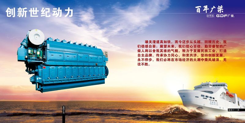 廣柴百年的沉浮變遷,是民族工業(yè)曲折發(fā)展的縮影,與國(guó)家命運(yùn)緊密相連。50年代廣柴積極響應(yīng)國(guó)家號(hào)召,成為廣州市首批公私合營(yíng)企業(yè)之一,經(jīng)過(guò)艱難地摸索前行,60年代,“協(xié)同和機(jī)器廠”正式改名為廣州柴油機(jī)廠,并作為國(guó)家動(dòng)力工業(yè)的重要企業(yè),勇?lián)鷷r(shí)代使命,一路披荊斬棘,于1969年制成我國(guó)第一條最大截面球墨鑄鐵曲軸,并榮獲科學(xué)大會(huì)獎(jiǎng)。70年代,伴隨國(guó)家轉(zhuǎn)型建設(shè)需要,廣柴又投入中速船用柴油機(jī)的研究,并于1977年研制成功6320型970千瓦中速船用柴油機(jī),填補(bǔ)了我國(guó)這一檔次船用柴油機(jī)的空白,獲得1978年全國(guó)科學(xué)大會(huì)獎(jiǎng)。80年代改革開放初期,廣柴在6300和6320原有機(jī)型基礎(chǔ)上,又派生出近40多個(gè)品種規(guī)格的柴油機(jī)。廣柴不斷走出舒適區(qū),勇攀新高峰,積極進(jìn)行產(chǎn)品結(jié)構(gòu)優(yōu)化,生產(chǎn)逐年上升,1989年柴油機(jī)產(chǎn)量達(dá)到12.5萬(wàn)千瓦,上繳利稅628萬(wàn)元,利潤(rùn)總額1113萬(wàn)元,創(chuàng)下了當(dāng)時(shí)工廠歷史的最高記錄。90年代,廣州柴油機(jī)廠在市場(chǎng)經(jīng)濟(jì)的浪潮中,不斷推陳出新,以可靠的整機(jī)質(zhì)量和優(yōu)質(zhì)的服務(wù)努力開拓市場(chǎng),贏得了一個(gè)又一個(gè)市場(chǎng)機(jī)遇,并獲得原機(jī)械電子工業(yè)部何光遠(yuǎn)部長(zhǎng)“致力產(chǎn)品開發(fā),煥發(fā)廣柴新姿”的題詞。2000年為適應(yīng)航運(yùn)市場(chǎng)需求,滿足船舶建造行業(yè)對(duì)船舶動(dòng)力的需求。廣柴從“零”出發(fā),歷時(shí)7年研發(fā),自主制造出劃時(shí)代意義的G32系列船用柴油機(jī)產(chǎn)品,其技術(shù)達(dá)到國(guó)內(nèi)領(lǐng)先地位和國(guó)際先進(jìn)水平,迅速成為了公司的龍頭產(chǎn)品,并獲得中國(guó)機(jī)械工業(yè)科學(xué)技術(shù)獎(jiǎng)和廣州市科學(xué)技術(shù)獎(jiǎng)。2010年3月廣柴在發(fā)展的歷程中再次迎來(lái)嶄新的時(shí)刻——原廣州柴油機(jī)廠正式改制更名為廣州柴油機(jī)廠股份有限公司,此舉標(biāo)志著企業(yè)的改制取得了成功,為推進(jìn)國(guó)家企業(yè)體制改革,釋放市場(chǎng)活力,提供企業(yè)藍(lán)本。
