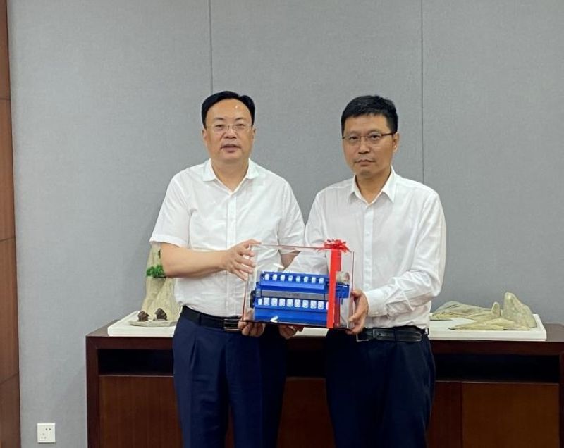 隨后走訪靖江市委,靖江市委書記張長平與鄔書記一行進行座談,將廣柴股份與靖江經濟技術開發區及江蘇多凱動力機械有限公司合作項目落細落實,共同探討未來合作的廣闊前景,并將廣柴定制的16VG32柴油機(8000kW)模型贈送給靖江市委。