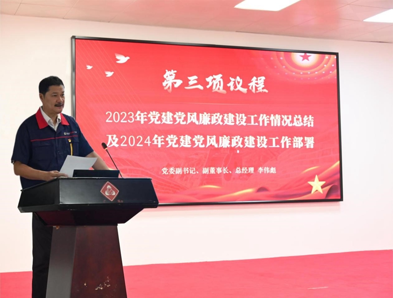 黨委副書記、副董事長(zhǎng)、總經(jīng)理李偉彪同志代表公司黨委對(duì)公司上一階段黨建黨風(fēng)廉政建設(shè)工作情況進(jìn)行總結(jié),并對(duì)2024重點(diǎn)工作提出要求: